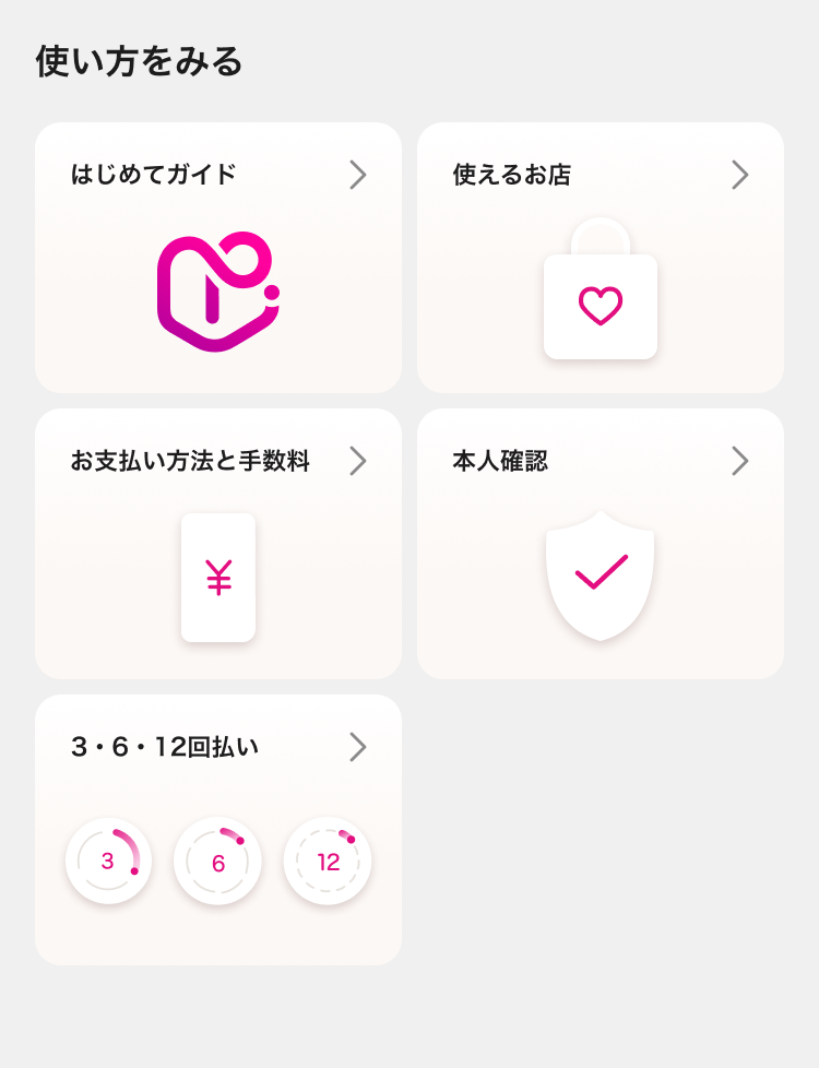 その他、お買い物を楽しむためのご案内や、アプリの使い方をご覧いただけます。