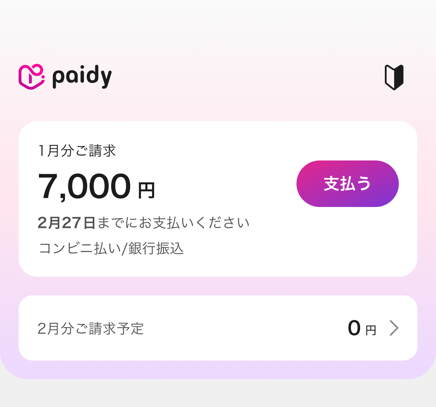「支払う」より、当月請求分のお支払い画面をご覧いただけます。