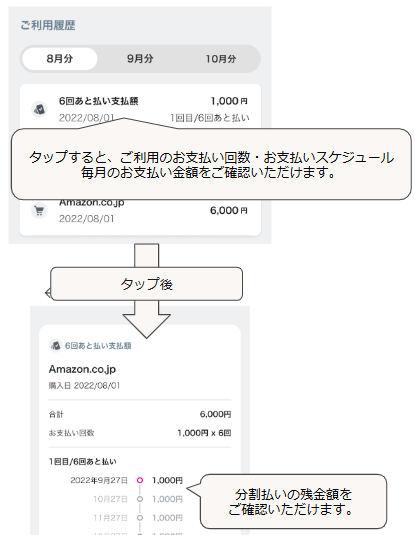 3・6・12回あと払いのご利用分は下記のようにご確認いただけます。